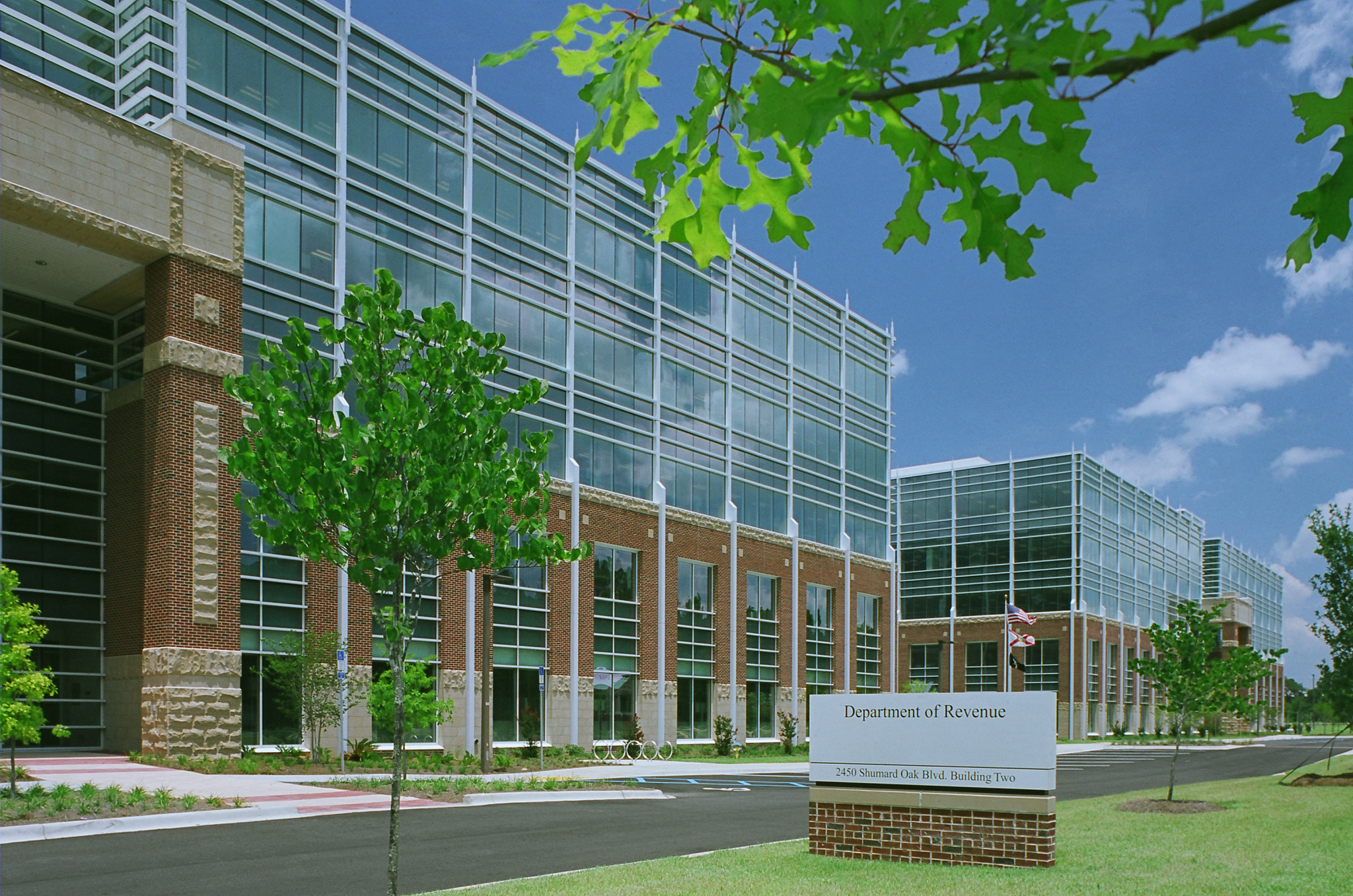 INVISION designed the new headquarters for the Florida Department of Revenue, creating a unified and efficient campus that embodies functionality, sustainability, and employee well-being. Situated on a 47-acre site in Tallahassee, the development includes three primary structures: a two-story call center and two identical five-story, 200,000-square-foot office buildings. Together, they form a cohesive workplace environment that supports more than 2,000 employees and streamlines operations across the state.