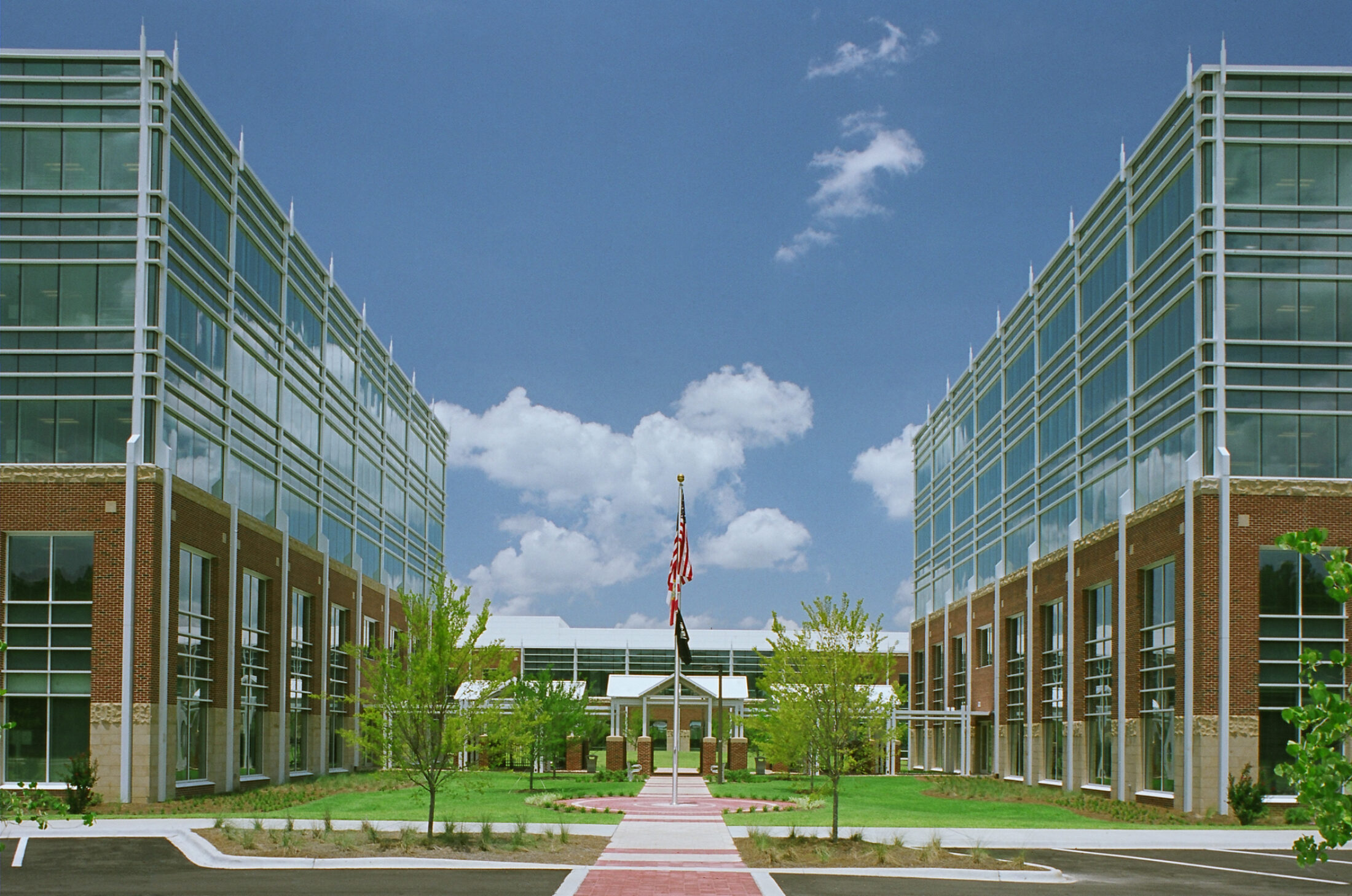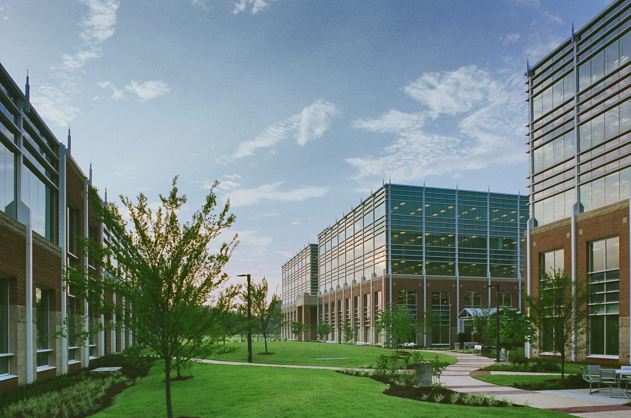 The campus design emphasizes connectivity and flexibility through open-plan office layouts, raised access flooring, and abundant natural light. Shared amenities such as a central fitness area, café, and generous training and conferencing facilities foster collaboration and promote a healthy work-life balance. Sustainable strategies were integrated throughout the project, resulting in LEED NC Gold certification.