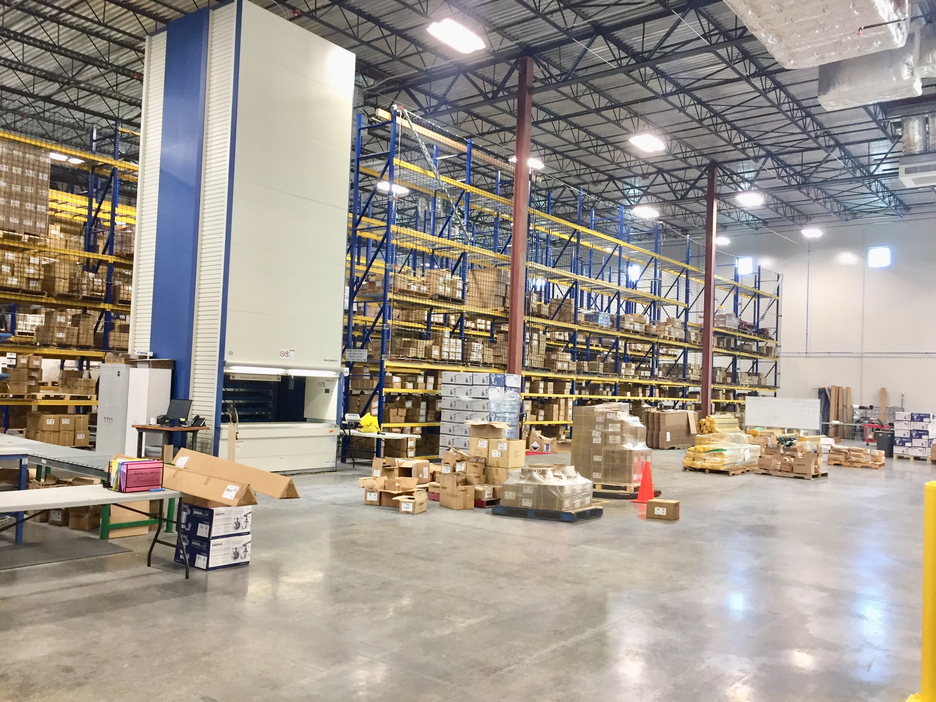 The design emphasizes connectivity between departments. The engineering and R&D labs are positioned adjacent to both the warehouse and corporate offices, promoting hands-on problem-solving and streamlined product development. The warehouse — fully air-conditioned for product integrity — utilizes an advanced automated vertical lift storage and retrieval system, enabling quick, precise fulfillment of customer orders.
