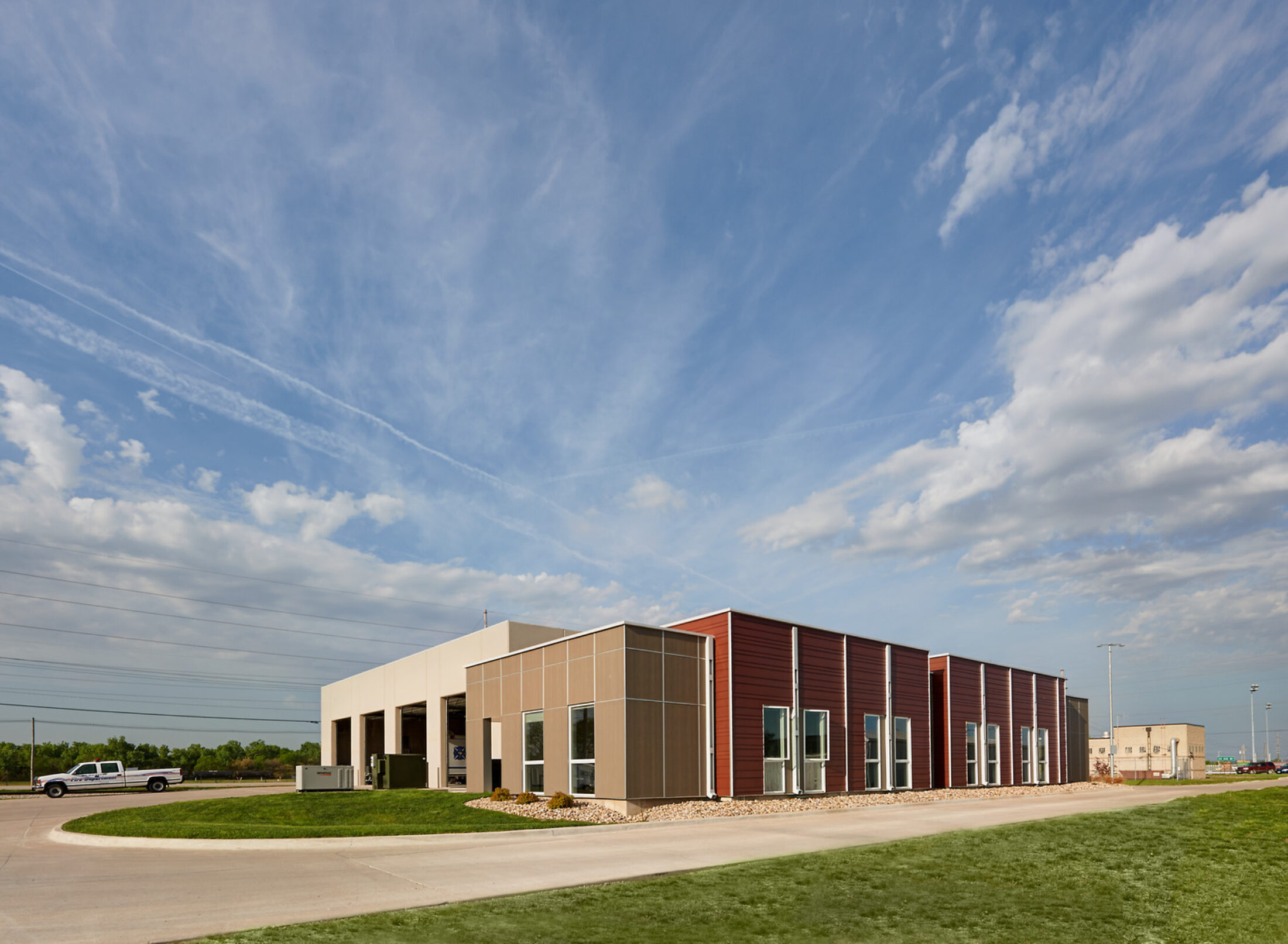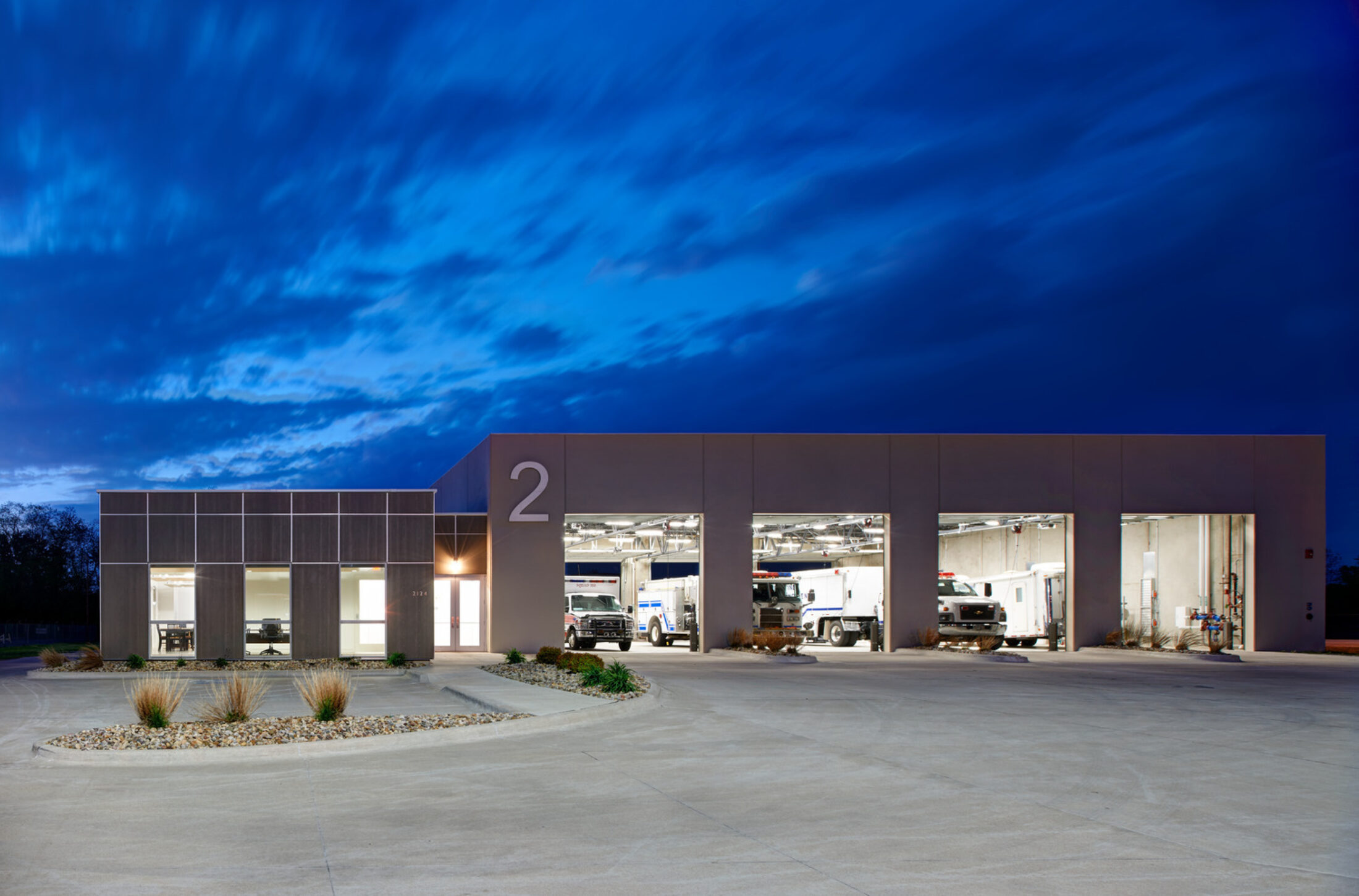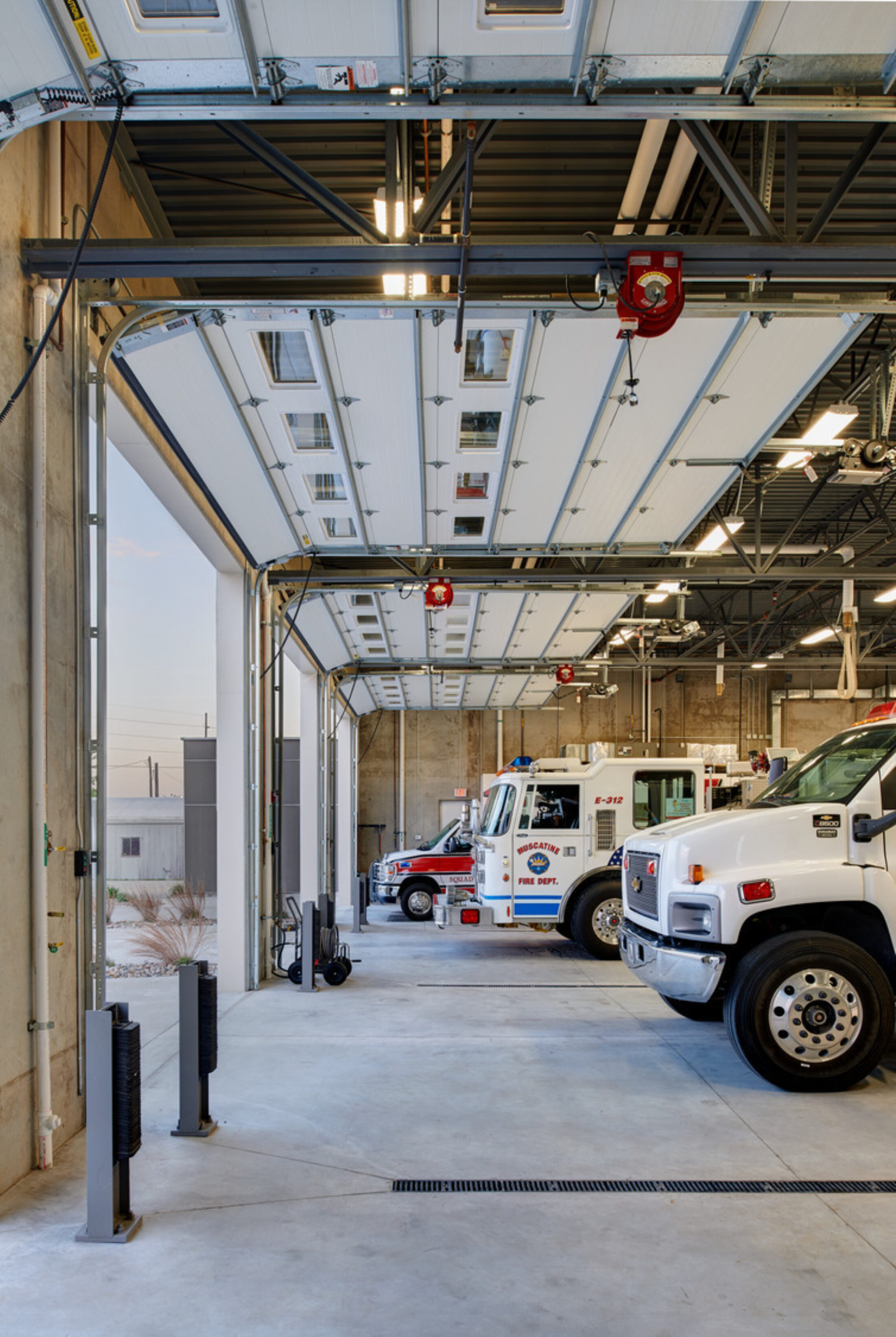 Load-bearing, insulated, precast concrete panels were chosen for the structure at the apparatus bay because they served multiple purposes:
