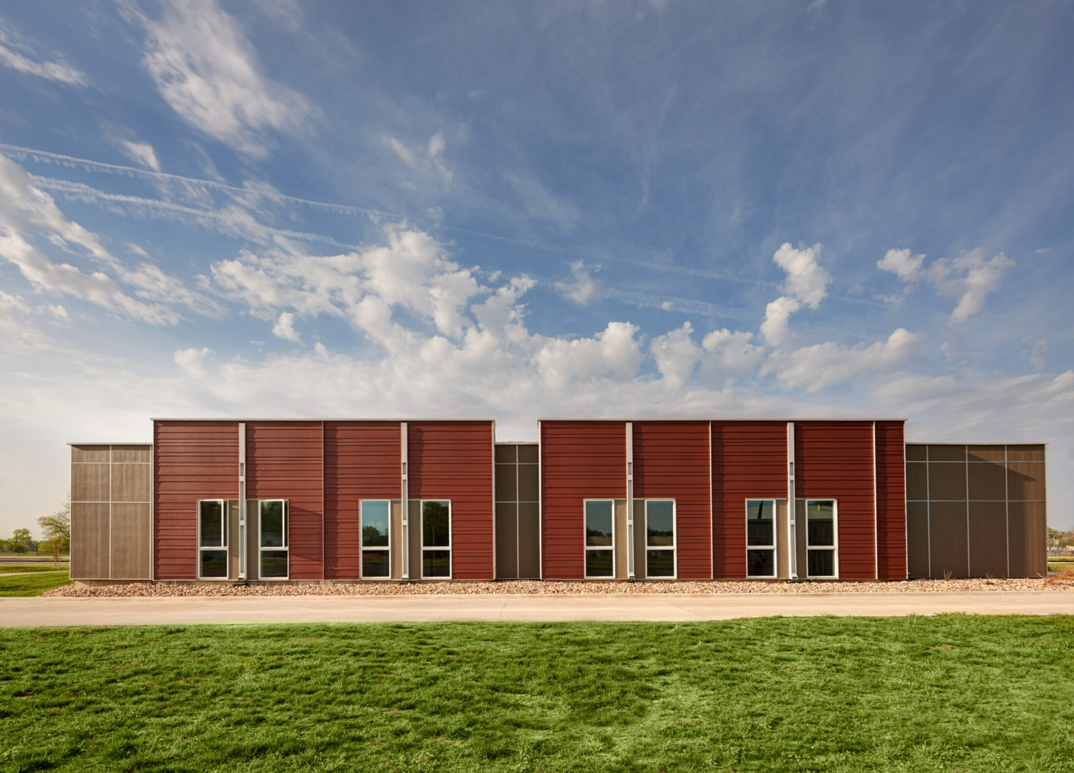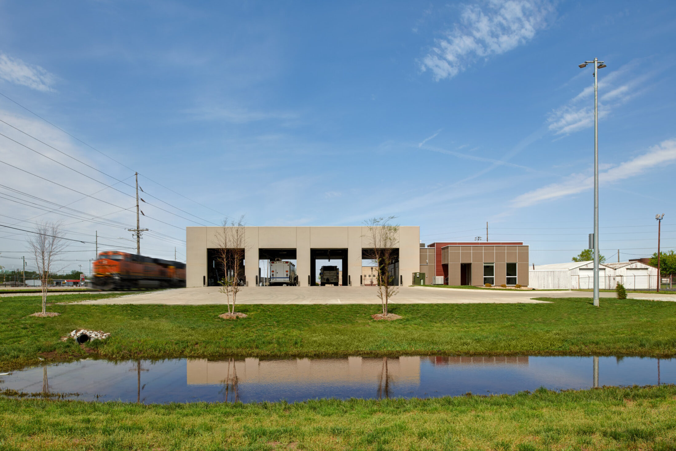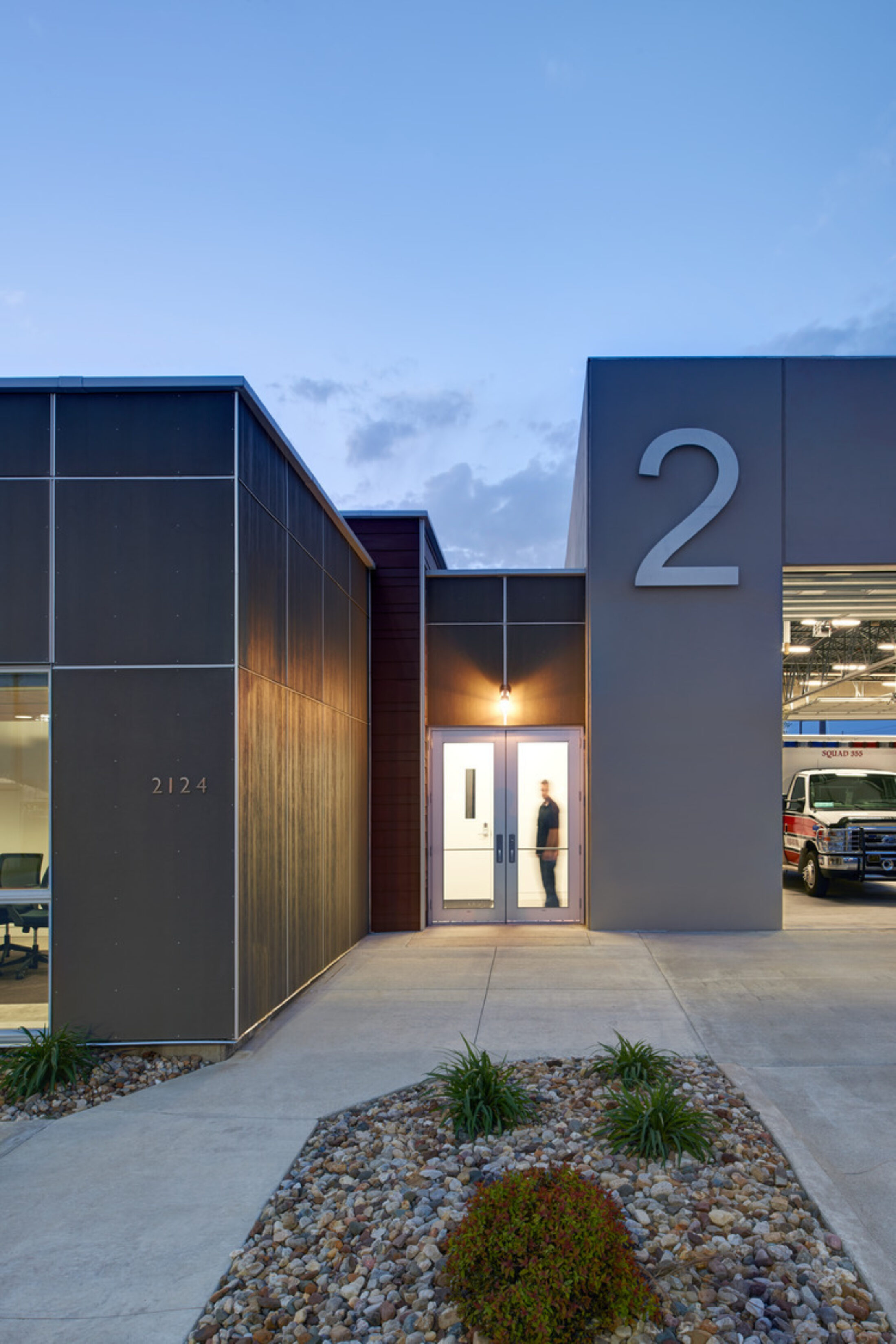 Load-bearing, insulated, precast concrete panels were chosen for the structure at the apparatus bay because they served multiple purposes: