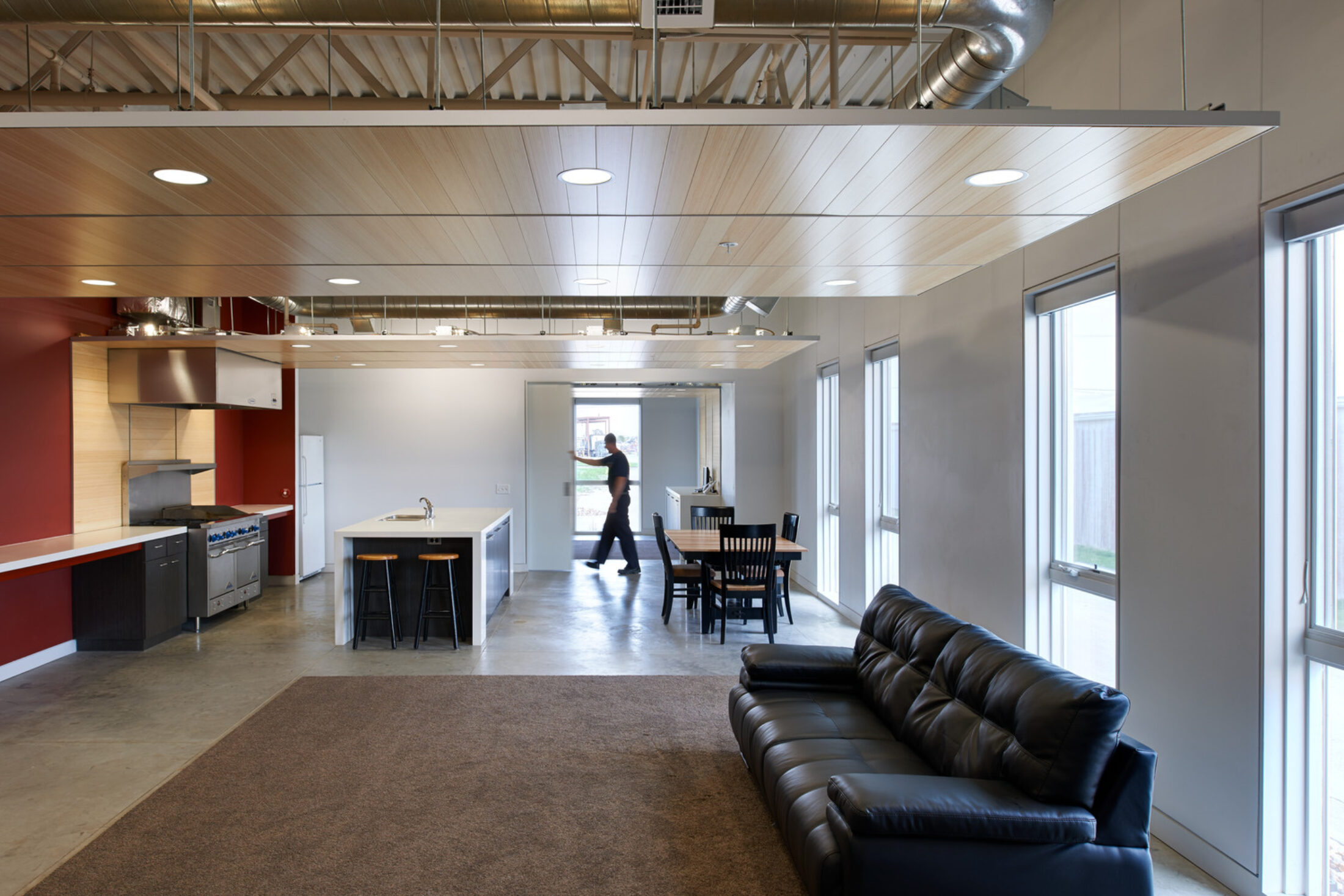 The team worked together to devise a planning solution that positioned the apparatus bay nearest to the railroad to act as a buffer for the living areas in the facility. INVISION worked to integrate the living and work spaces throughout the building, while still clearly designating the living spaces as private to provide security.