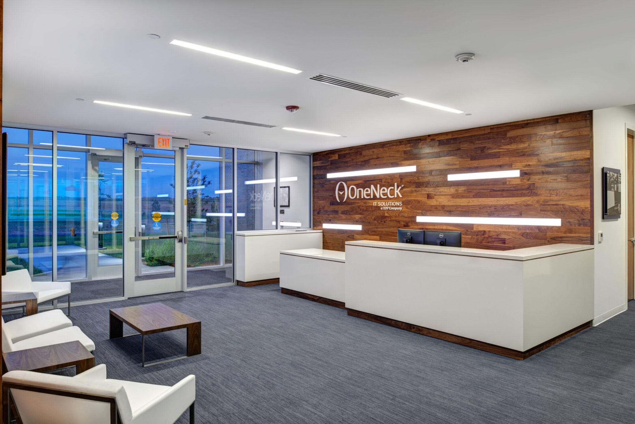 The client’s goal for the OneNeck Data Center was to design “the data center of the future” with modern architecture and a contemporary finish palette. As a flagship project, the state of the art facility in Denver was built with innovative functionality and security solutions to provide a template for future facilities. INVISION worked with the owner to design a facility without site-specific constraints, allowing replication of the design as needed for future projects.