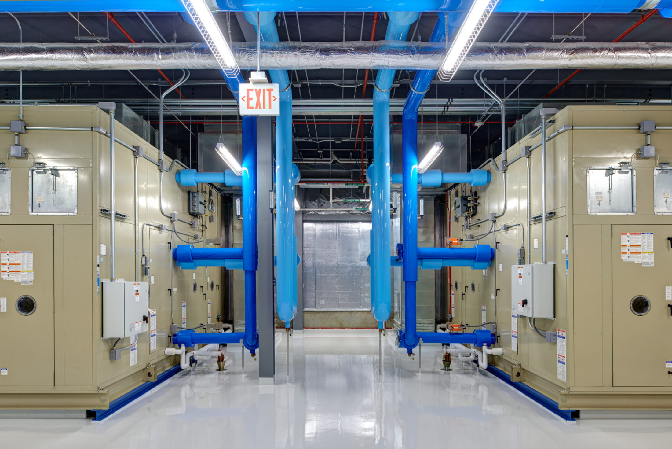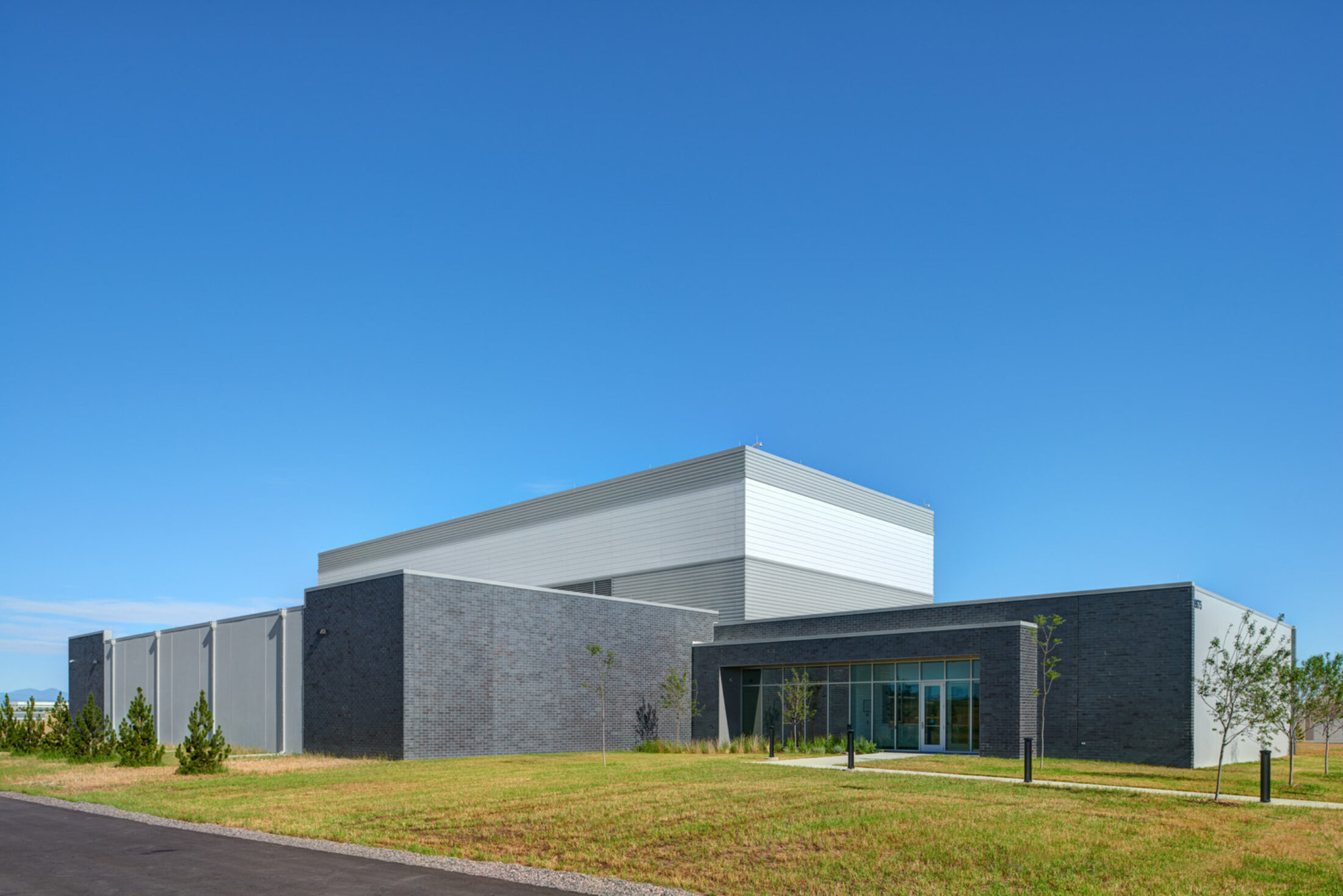 Areas around the perimeter of the building double as functional storage and added security, creating a buffer between the data rooms and exterior walls. The site allows for expansion and the building was designed to accommodate multiple additions. The long-term plan includes the possibility of the data center expanding up to five times its current size.