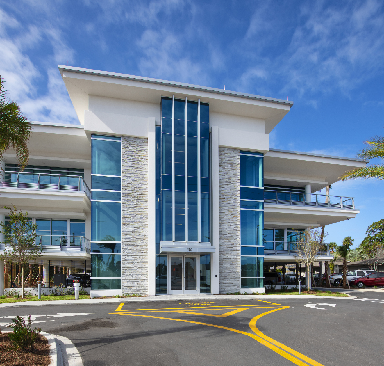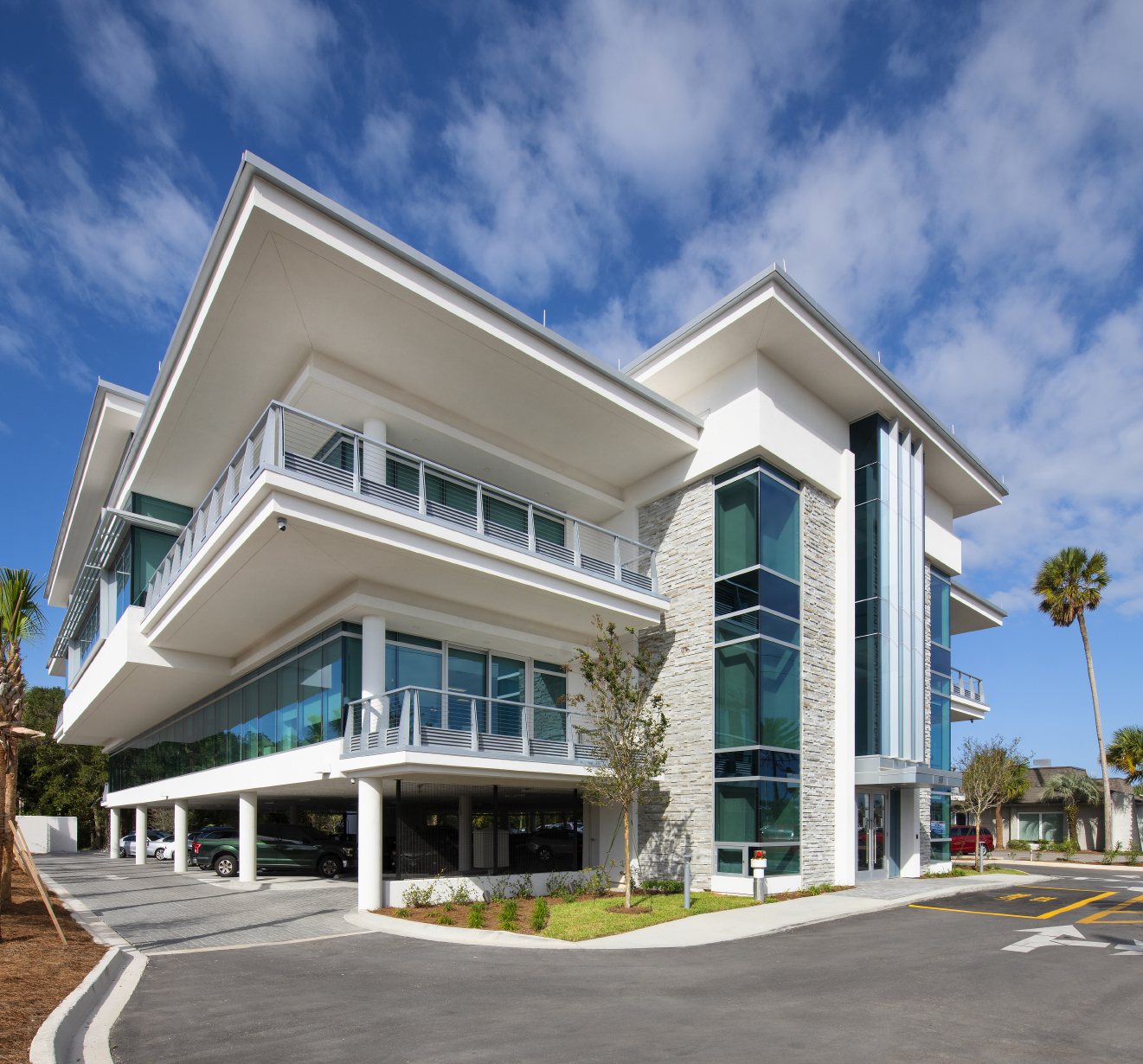 The Shorebreak Office Building serves as the new headquarters for Shoreline Equity Partners in Neptune Beach, Florida, blending contemporary coastal architecture with a refined corporate aesthetic. The three-story, build-to-suit facility features a ground-level parking structure with approximately 27,000 square feet of office space above, efficiently organized within the city’s 35-foot height restriction. A cast-in-place concrete structure allowed for reduced floor-to-floor heights while maintaining spacious, open interiors.