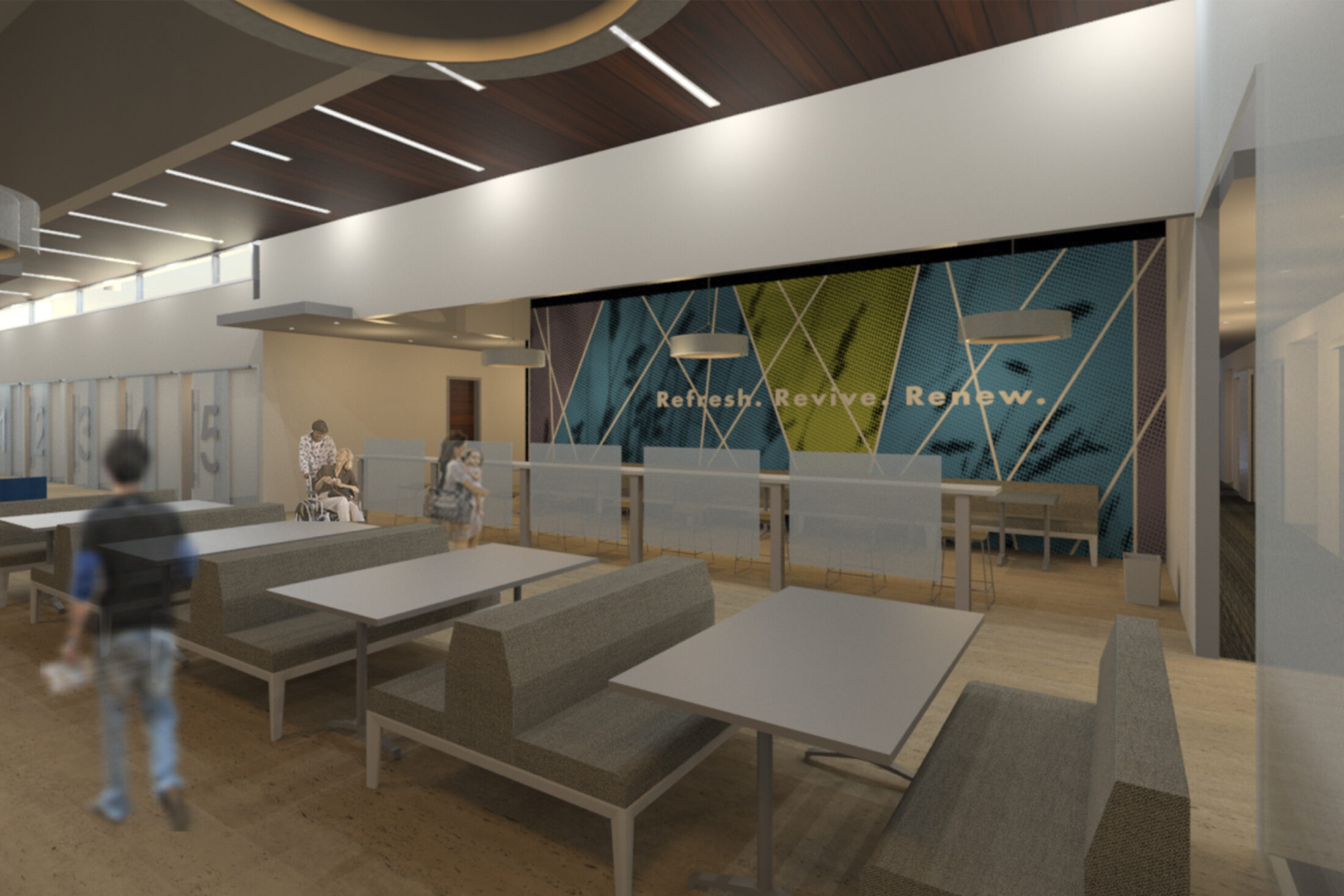 The one-story addition and renovation to the existing hospital consolidated all outpatient services including primary care, therapy, rehabilitation, and wellness into a state-of-the-art facility focused on quality of care. Natural light and views enhance the patient experience while materials were chosen to complement the existing palette with a more progressive and energy-efficient design. The ipé and terracotta facades were woven into the interior design as well, where they meet additional natural materials and graphics promoting health and wellness.
